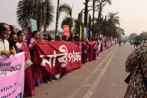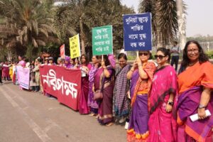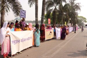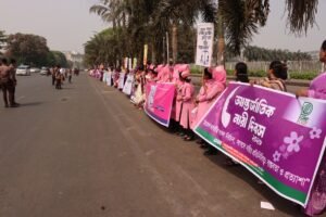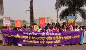 আন্তর্জাতিক নারী দিবস উপলক্ষ্যে আজ ২২ ফাল্গুন ১৪৩২/৭ মার্চ ২০২৬, শনিবার, সকাল ১০-১১টা পর্যন্ত আন্তর্জাতিক নারী দিবস কমিটির আয়োজনে জাতীয় সংসদ ভবনের সামনে (মানিক মিঞা এভিনিউ) অবস্থান কর্মসূচি ও ঘোষণাপত্র পাঠ করা হয়েছে। আমাদের এবারের প্রতিপাদ্য ছিল “ত্রয়োদশ জাতীয় সংসদ নির্বাচন, সংসদে নারীর প্রতিনিধিত্ব: বাস্তবতা ও প্রত্যাশা”। আন্তর্জাতিক নারী দিবসের কর্মসূচিতে ঘোষনাপত্র পাঠ করেন-রেহানা সামদানী, সদস্য নারীপক্ষ, মাহমুদা বেগম, সবুজের অভিযান ফাউন্ডেশন ও লায়লা আরিফা খানম, ব্রেকিং দ্যা সাইলেন্স।  ঘোষণাপত্রে উল্লেখিত বিভিন্ন দাবি বিশ্লেষন করেন- সামিয়া আহম্মেদ, এ্যাসিড সারভাইভারস ফাউন্ডেশন, সামিনা ইয়াসমিন, বহ্নিশিখা, তামান্না ইয়াসমীন খান, শক্তি ফাউন্ডেশন ও কামরুন নাহার, নারীপক্ষ।  ঘোষণা পাঠ ও দাবি বিশ্লেষনের মাঝে মাঝে সংশ্লিষ্ট বিষয়ে শ্লোগান দেয়া হয়।
